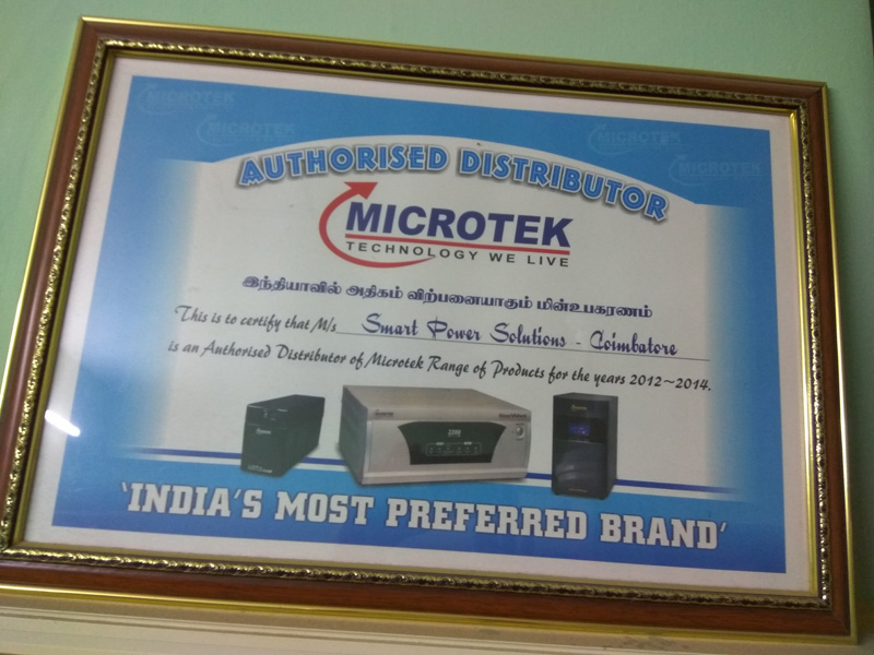 Smart power Solution started at 2005, very proud to say that We are the first Microtek products distributor in Coimbatore. In 2009 we started distribute Exide battires.Our highly specified range of UPS Battery is high frequency UPS and one of the widely used in Offices, Clinics and Home applications. With technical innovation, our offline UPS has given protection as well as short circuit and overload protection.